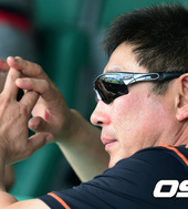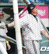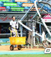 2012.07.08 15: 41타석에 선 김기태 감독,'잘 날아가네'