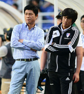 2012.07.08 20: 01윤성효 감독-서정원 코치, '오늘은 왜이리 안되냐'