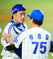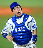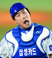 류중일 감독,'안방마님, 잘해줬어!'