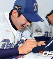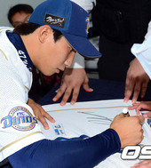 2012.07.14 16: 58나성범 유니폼에 사인하는 이재학