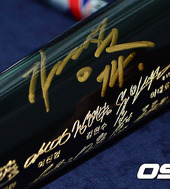 2012.07.14 17: 01베이징 올림픽 기념 배트에 새겨진 김경문 감독의 사인