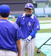 2012.07.17 16: 57미소 짓는 이승엽,'한일 통산 500홈런 내일로 미뤄요~'