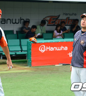 2012.07.18 17: 05흐뭇한 미소 송진우,'션 헨! 시키는대로 잘하네'