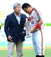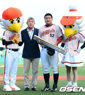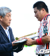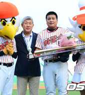 2012.07.19 19: 00200홈런 달성 기념 황금배트 받는 김태균