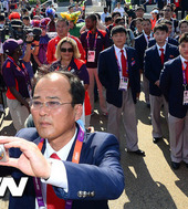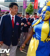 2012.07.25 20: 24입촌식 사진에 담는 북한 선수단
