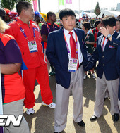 2012.07.25 20: 24진지한 표정의 북한선수단