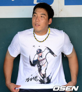 2012.07.25 16: 41김현수,'제 모습 박힌 티셔츠 멋있죠?'