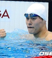 2012.07.28 20: 04박태환 실격 소식에 웃음을 감추지 못하는 쑨양