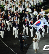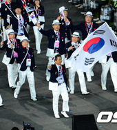2012.07.28 07: 16'기수 윤경신 앞세워 한국 선수단 입장'