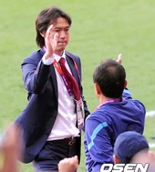 2012.07.30 03: 21히딩크의 어퍼컷 세레모니를 펼치는 홍명보 감독