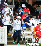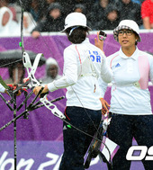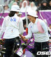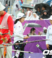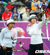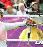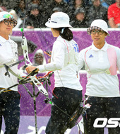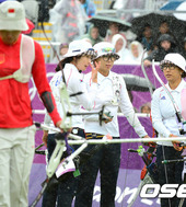 2012.07.30 03: 31여자 양궁 단체,'비가 많이 내리네~'