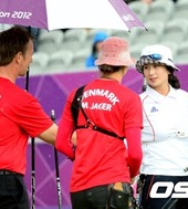 2012.07.30 00: 10굳은 날씨에 8강전을 벌이는 여자 양궁 대표팀