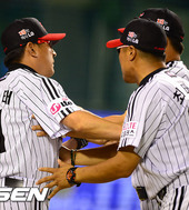 2012.08.01 21: 28김기태 감독,'이거 놓으세요! 할말은 해야겠어'