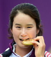 기보배,'런던서 금메달만 두 번 깨물어요~'