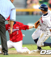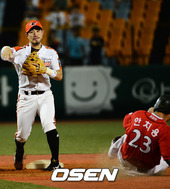 2012.08.03 21: 34한상훈,'병살아웃처리 위기에서 벗어났어'