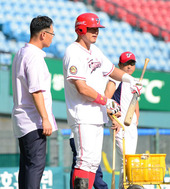 2012.08.03 21: 13마해영 위원,'배트 잡으니 옛 생각나네'