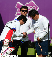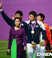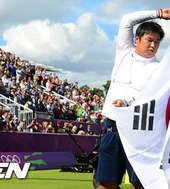 2012.08.04 00: 45태극기 세레모니를 펼치는 남자양궁 개인 첫 금메달 오진혁