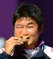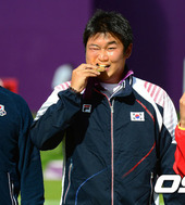 2012.08.04 00: 46오진혁,나는 금메달 깨물며 윙크 세레모니'