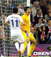 2012.08.05 04: 13선제골을 넣고 환호하는 지동원