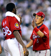 2012.08.05 20: 14최향남, '일목아, 고생했다'