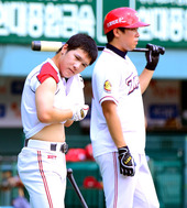 2012.08.05 19: 11최희섭-박기남, '오늘 같이 더운 날씨엔 얼음물이 최고지'