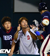 2012.08.05 20: 01양의지-오재원, '재훈아 네가 최고야'
