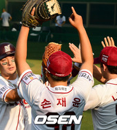 2012.08.05 18: 07동료들과 기쁨을 나누는 오재원