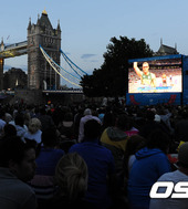 2012.08.06 07: 49우사인 볼트의 경기를 기다리는 타워브릿지 앞 런던시민들