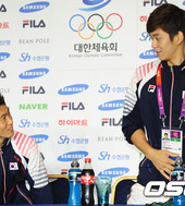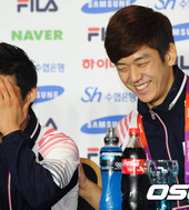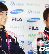 2012.08.07 18: 15이용대-정재성,'미소도 닮았네!'