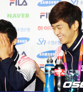 2012.08.07 18: 03양학선,'용대형 칭찬에 쑥스러워요~'