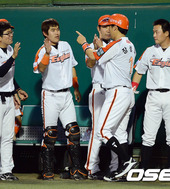 2012.08.08 19: 45김태균,'저 잘했죠 코치님~'