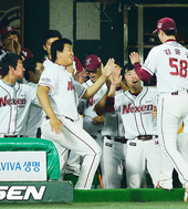 2012.08.10 20: 43환상적인 역투를 펼친 강윤구에게 환호하는 동료들