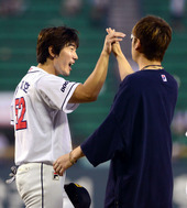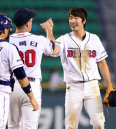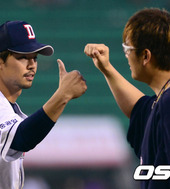 2012.08.11 19: 48김재호,'선우형, 5승 축하해요~'