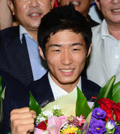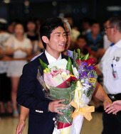 2012.08.11 17: 39귀국 양학선,'어머니와 뜨거운 포옹'