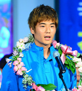 2012.08.12 18: 11꽃목걸이걸고 환한 미소 짓는 구자철