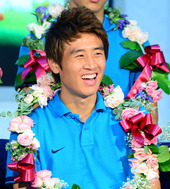 2012.08.12 18: 04구자철,'꽃 목걸이를 하고 환한 미소'