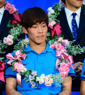 2012.08.12 18: 10김기희,'자랑스러운 꽃 목걸이를 하고'