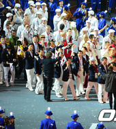 2012.08.13 06: 32런던 올림픽 폐막식에 등장하는 한국 선수단