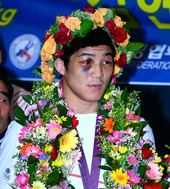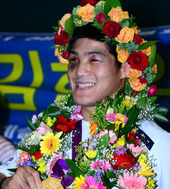 2012.08.13 17: 52김현우,'위풍당당 금의환향'