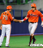 2012.08.14 20: 24포항구장 첫 안타-홈런 이여상,'북치고 장구치고~'