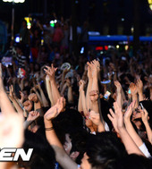 2012.08.14 20: 27길 건너에서 공연 기다리는 싸이 강남팬들