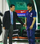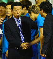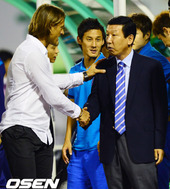 2012.08.15 22: 02격려하는 최강희 감독, 얼어버린 최덕주 코치