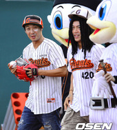2012.08.18 17: 24결혼 선언 하하-별,'사직구장 함께 왔어요'