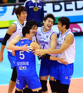 2012.08.25 16: 29기뻐하는 삼성화재 선수들