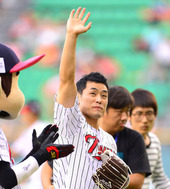 2012.08.25 17: 15금메달리스트 송대남,'금빛 시구 들어갑니다~'