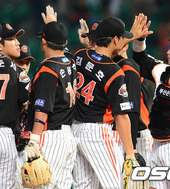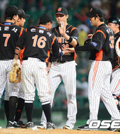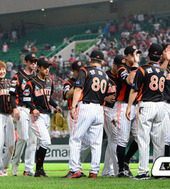 2012.08.29 21: 30롯데,'승리의 하이파이브 행진'