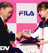 2012.08.29 11: 03밝은표정으로 휠라와 협약식 갖는 손연재