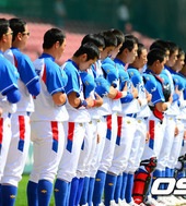 2012.08.31 15: 07베네수엘라전을 앞두고 국기에대한 경례하는 한국청소년야구대표팀
