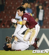 2012.09.07 21: 55서건창,'도루 중 헬멧쪽이 이원석 무릎쪽과 충돌!'