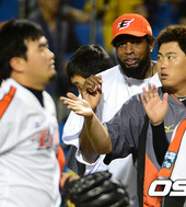 2012.09.11 21: 23류현진, '스리런 오재필 형님 좋아'
